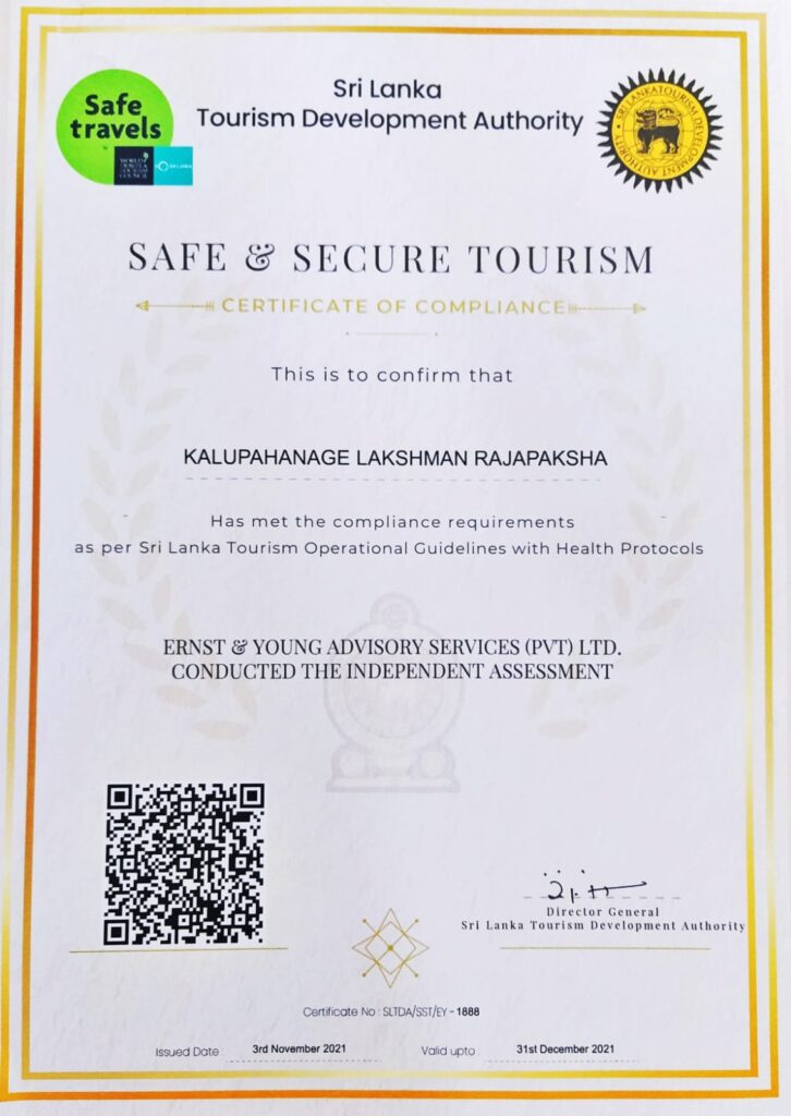I’m K.P. Lakshman, the owner of Sadee Tours. I have the guide license and I was awarded the Safe & Secure Certificate approved by the Tourism Development Authority in Sri Lanka.