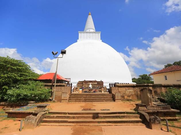 Thuparamaya Stupa is an ancient Buddhist temple in Anuradhapura, Sri Lanka. Located in the sacred area of Mahamewna park, the Thuparamaya Stupa is the earliest Dagoba to be constructed on the island, dating back to the reign of King DevanampiyaTissa (247-207 BC).[1] The temple has been formally recognized by the Government as an archaeological site in Sri Lanka.
